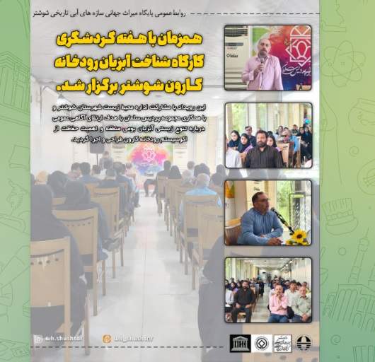 سرپرست پایگاه میراث جهانی سازههای آبی ـ تاریخی شوشتر ادامه داد: کارگاه شناخت آبزیان رودخانه کارون با مشارکت پایگاه میراث جهانی سازههای آبی ـ تاریخی شوشتر و اداره محیط زیست شوشتر برگزار شد تا ضمن معرفی گونههای بومی و اهمیت زیستمحیطی آنها راهکارهایی برای حفاظت از این منابع طبیعی ارزشمند ارایه شود.